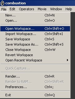 Dans Combustion, ouvrez le fichier .cws file (File / Open Workspace).