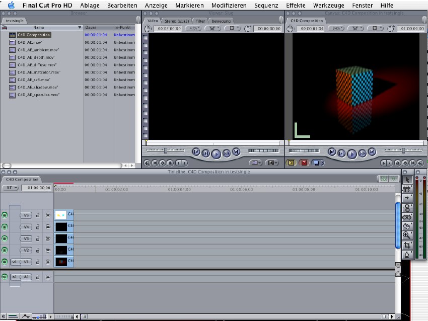 Apple Final Cut Pro (4.0 ou ultérieure ; version Mac de Cinema 4D uniquement) : Fichiers multi-passes