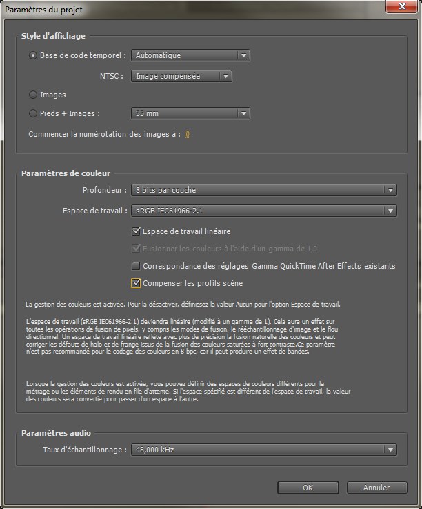 Aucun profil de couleur ne sera incorporé (ou ne sera lu en accord avec les réglages du projet ou les réglages du shader bitmap lorsque le fichier sera ouvert).