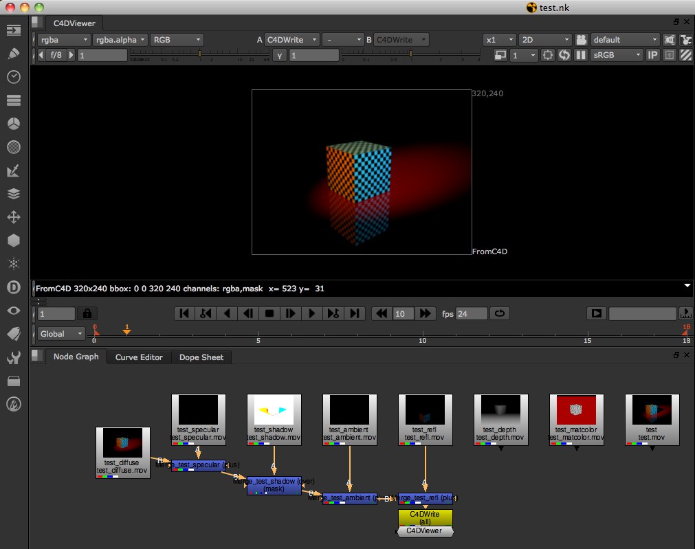 - Foundry Nuke (version 6.3 ou ultérieure): Fichiers multi-passes, données de caméra, lumières et objets via un fichier FBX séparé.