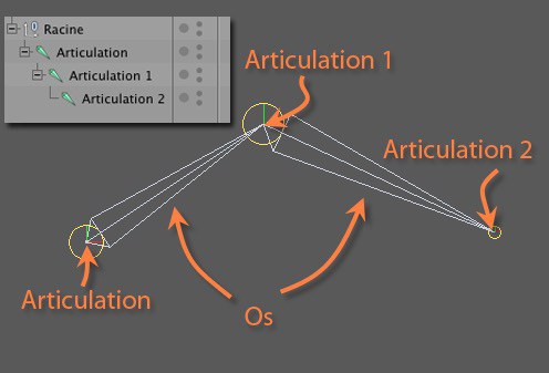 Avec le système actuel, les os ne sont plus des objets, mais simplement des espaces entre les articulations, et sont utilisés comme aide visuelle pour la représentation des articulations.