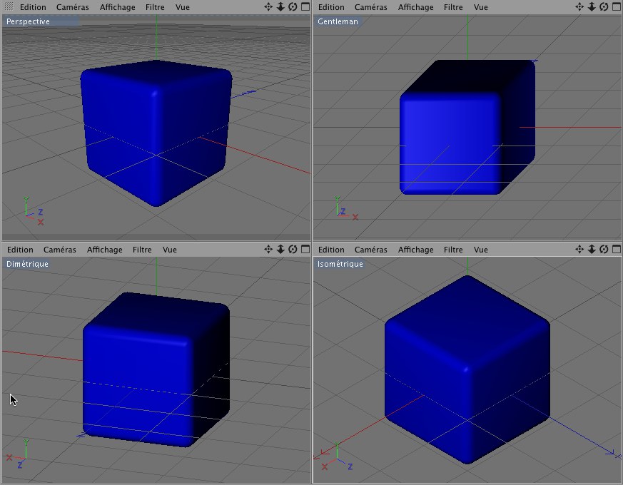 De gauche à droite : Perspective, Gentleman, Dimétrique, Isométrique.