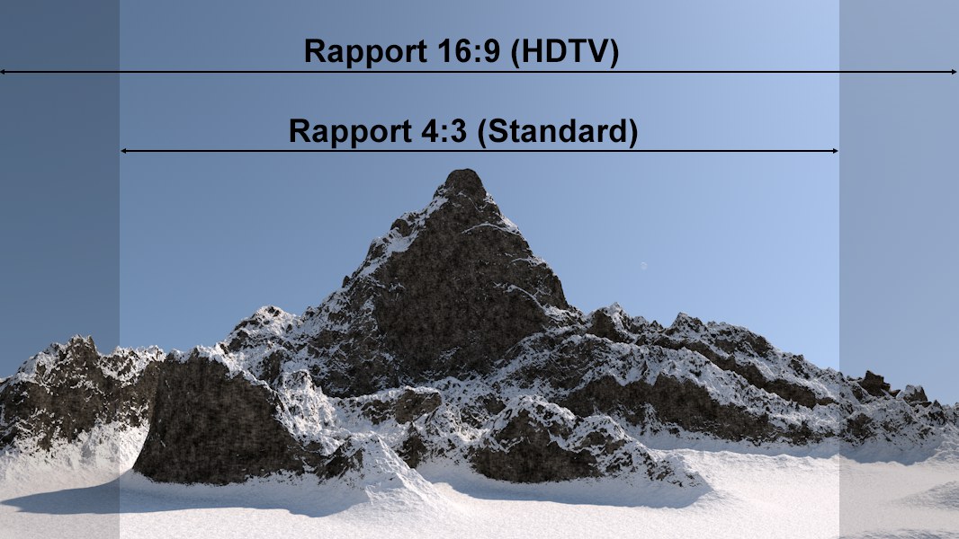 Exemple : Vous avez une scène dans laquelle le format de rendu est paramétré sur 800 x 600 avec une taille de capteur de 36 mm. Vous voulez sortir la scène avec un rapport hauteur/largeur de 16:9 tout en conservant la même perspective. Vous devez d’abord vérifier la nouvelle largeur de l'image : passez dans les paramètres de rendu et choisissez HDTV (16:9) comme Aspect film. La valeur de Hauteur sera modifiée en conséquence, ce que vous ne voulez pas. C’est pourquoi vous devez activer l'option Verrouiller Format et régler la valeur de Hauteur sur 600]. En résulte la valeur de Largeur suivante : 1 066,667.