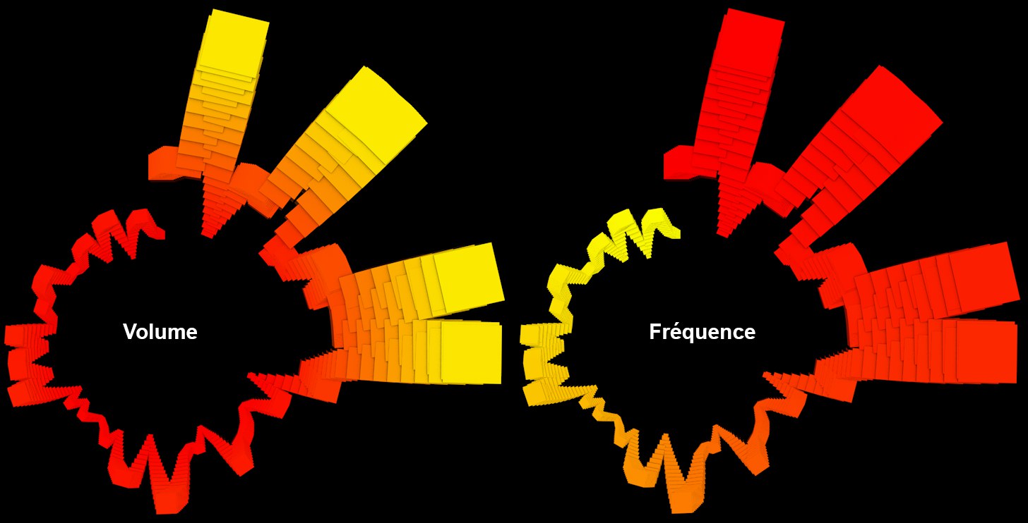 Les couleurs de ce dégradé peuvent être réparties en fonction du niveau sonore ou de la fréquence.