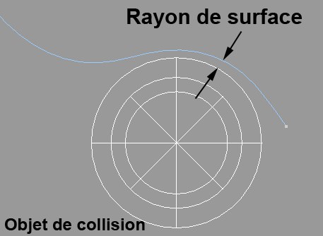 Le rayon de surface définit le rayon autour du guide à l’intérieur duquel les collisions ont un effet.