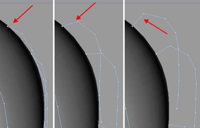 Si les dynamiques affectent un système de guides comme celui présenté plus haut (l’hémisphère a été affectée d’une propriété Collision de cheveux), et que vous sélectionnez l’option Guides, les cheveux interpolés entre les guides vont traverser la surface de l’hémisphère. Si vous sélectionnez l’option Cheveux, chaque cheveu sera vérifié pour les collisions.
