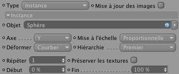 Ce panneau sert principalement à remplacer les cheveux par des polygones (même les objets sélectionnés utilisant l’option Instance ou les splines).