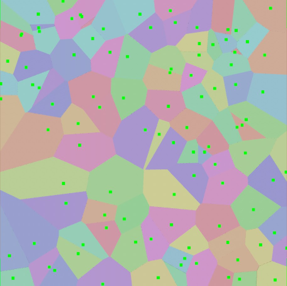 Les points des cellules Voronoï peuvent être affichés en vert.