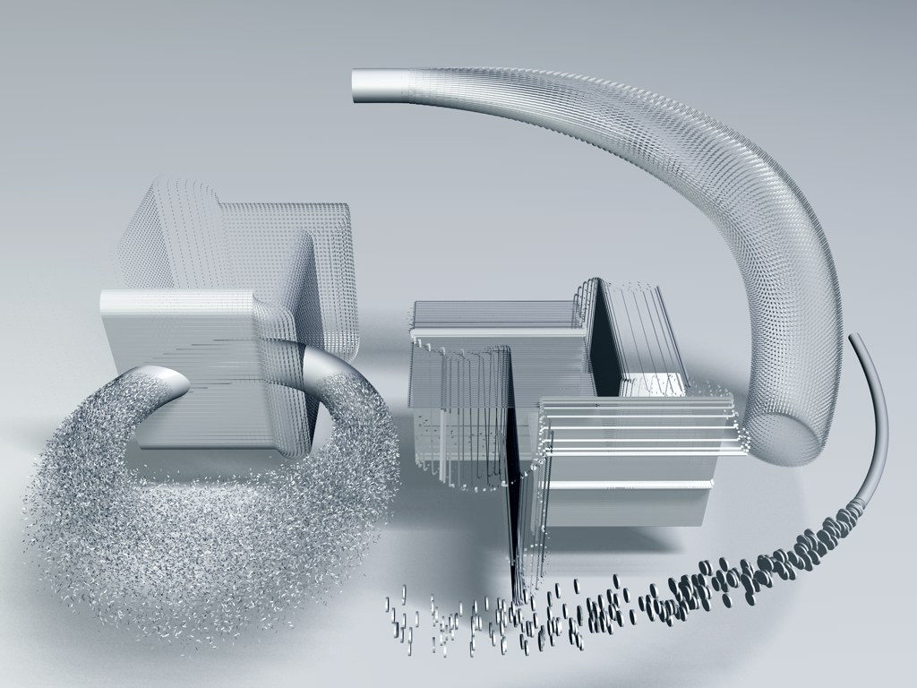 2 * (missing or bad snippet), 2 * (missing or bad snippet) et 1 (missing or bad snippet) (une fois au niveau polygone, une fois au niveau spline) sont fragmentés en utilisant un objet PolyFX. La fragmentation d’un objet dépend de sa subdivision.