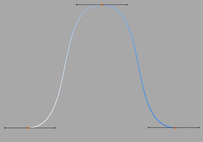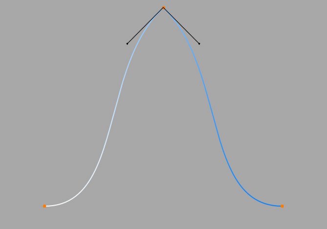 En ajustant la longueur des poignées des tangentes, vous pouvez contrôler l’intensité de la courbure. Déplacez le dernier point de la tangente vers un autre point et observez le mouvement symétrique de la poignée opposée.