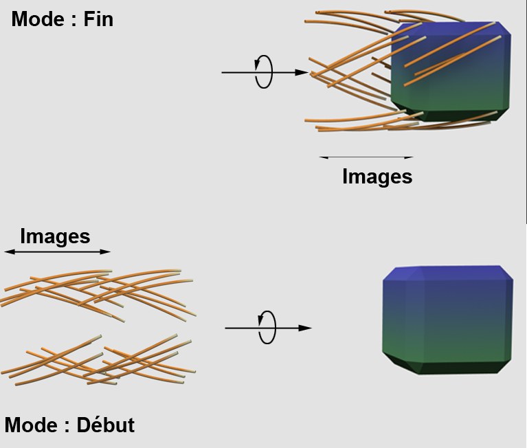 L’objet ou les particules en déplacement vont laisser une traînée. La longueur de cette traînée est définie par le nombre d’images défini par le paramètre Quantité à droite.