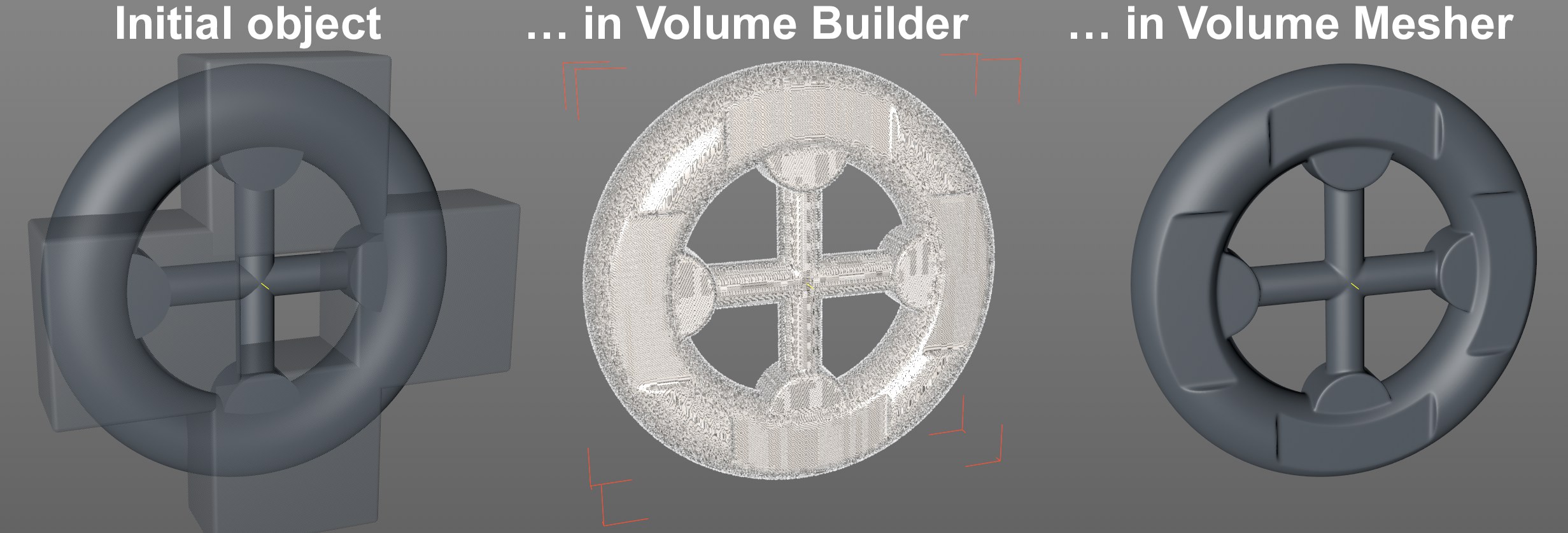 Le Générateur de Volume peut devenir un sous-objet à l’aide de Mailleurs de Volume afin de créer des maillages polygonaux à partir des Voxels.