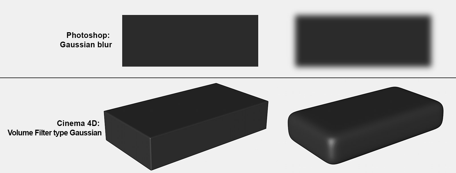 Par conséquent, tant Photoshop que Cinema 4D disposent de filtres présentant une fonctionnalité de flou gaussien :