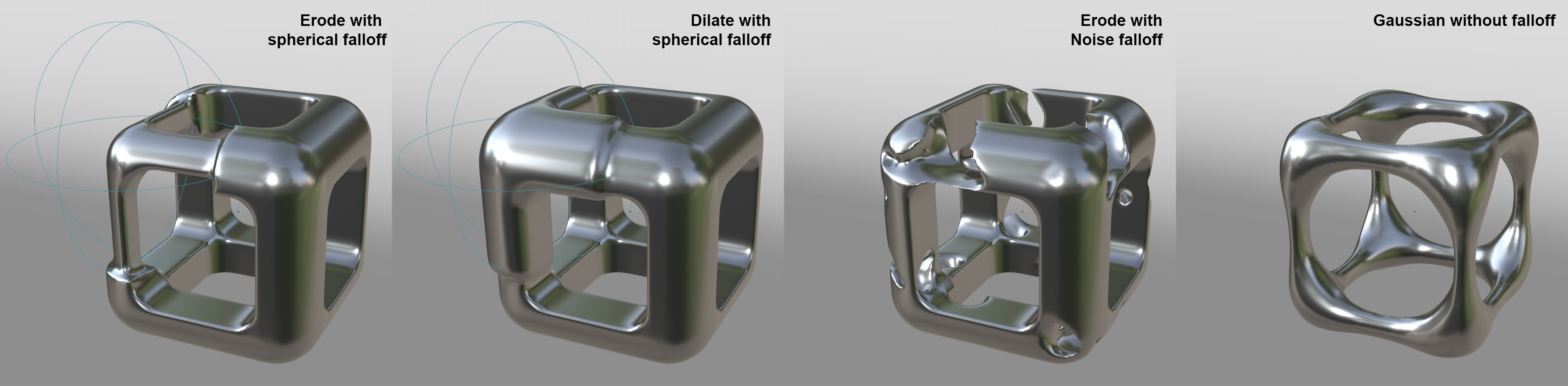 Les Filtres Volume peuvent, par exemple, être utilisés afin de lisser ou éroder/dilater :