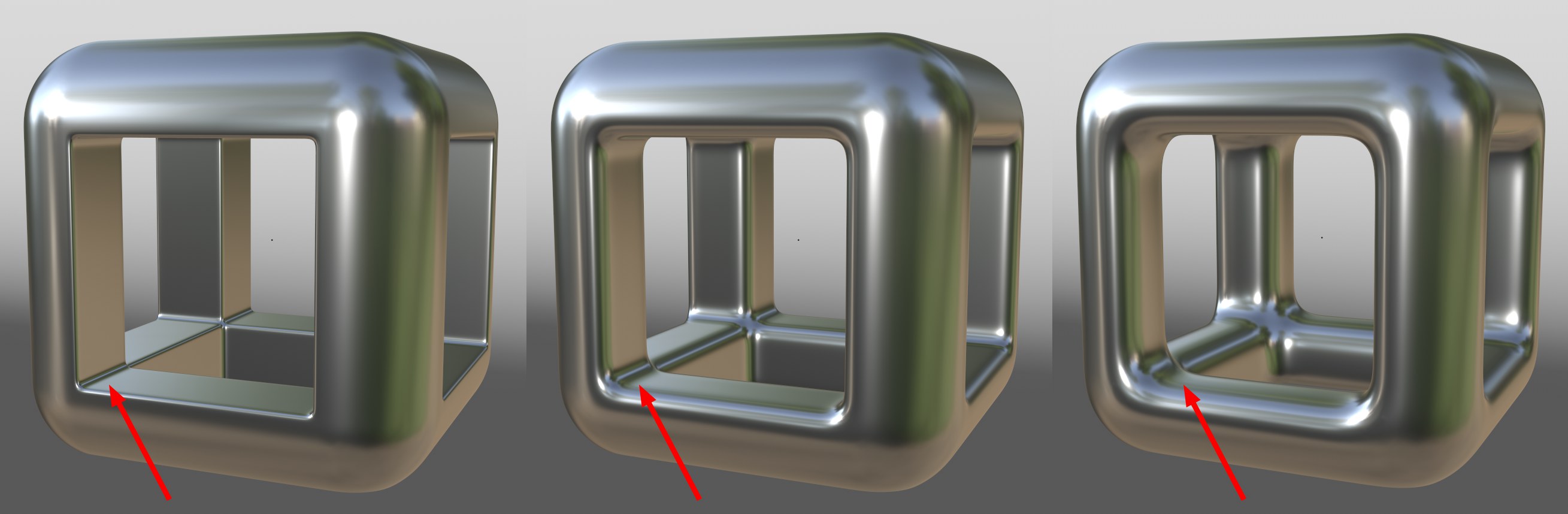 De gauche à droite : petit Décalage négatif et décalage positif (Type de Filtre = Dilater/Éroder avec une atténuation sphérique).