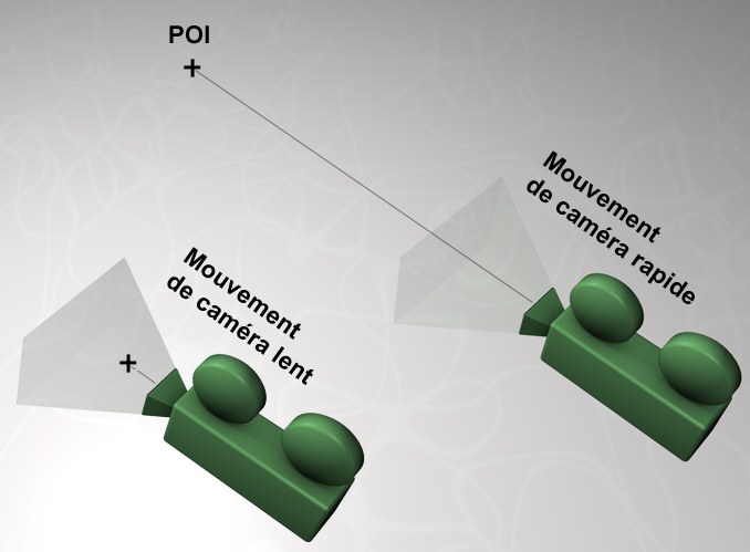 Cette option ne s’applique qu’au mouvement dedans / dehors de la caméra (touche 2). Le Point d’intérêt défini au début du mouvement de la caméra se déplace en même temps que cette dernière si aucun autre objet ne se trouve sur son chemin. La vitesse de la caméra est constante.