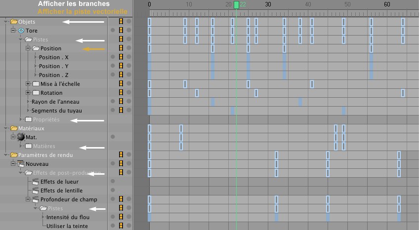 Vous pouvez afficher les branches et les pistes vectorielles sous forme de noms de répertoire, avec clés et pistes maîtresses supplémentaires.