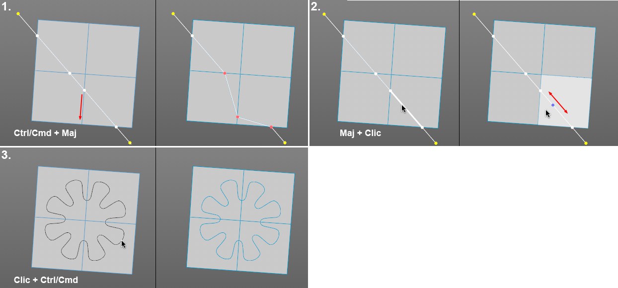1. Si un point de contrôle est déplacé alors que les touches Ctrl (Windows) / Cmd (Mac) + Maj sont enfoncées, les points de coupes voisins ne bougeront pas.