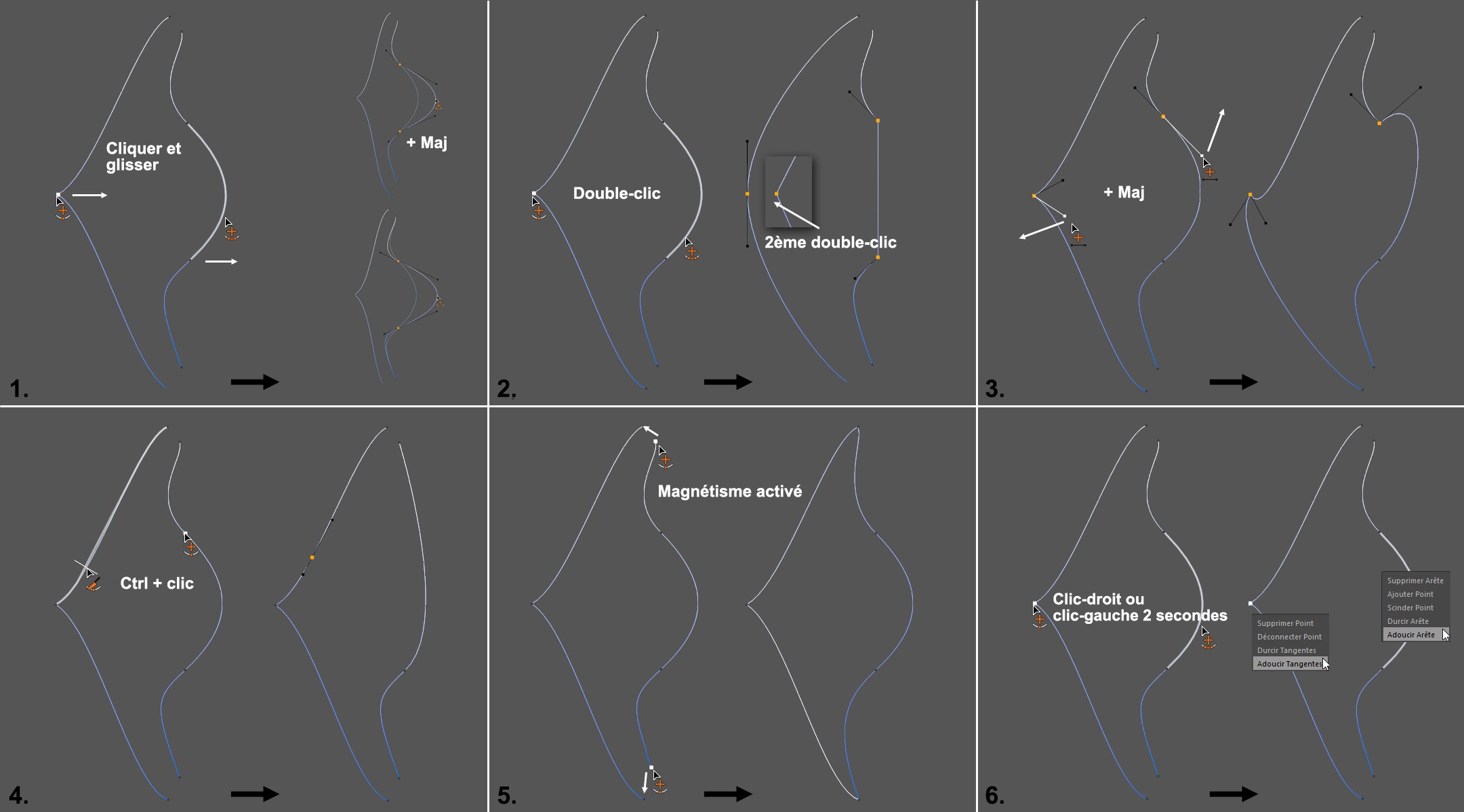 - Durcir les tangentes : place la longueur de la tangente pour les échines de Bézier à 0 et crée un point angulaire.