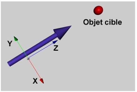 Si vous appliquez cette expression à un objet, il va pointer automatiquement vers l’origine d’un nouvel objet. Déposez l’objet à cibler dans le champ Cibler du gestionnaire d’attributs. L’objet auquel cette propriété est affectée va pointer vers cet objet cible avec son axe Z. Il continuera à pointer vers sa cible même si vous la déplacez.