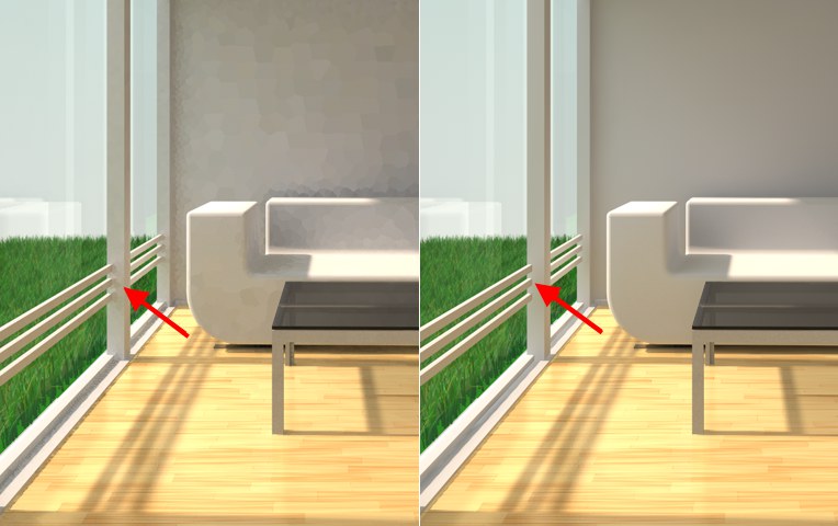 Comme vous pouvez le constater sur ces images, la durée du rendu est pratiquement diminuée de moitié. Bien qu’il est de plus en plus d’artefacts IG, c’est d’ordinaire bien différents dans les scènes très éclairées.