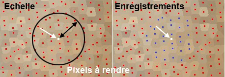 Les valeurs Echelle et Enregistrements limitent le nombre de shading points utilisés (les shading points ci-dessus ont été coloriés en rouge pour une meilleure visibilité).