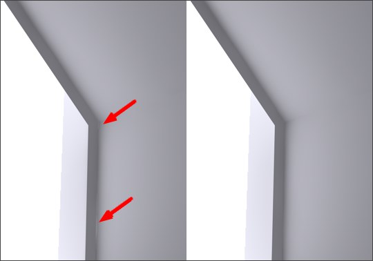 Utilisez ce paramètre pour définir le rayon dans lequel les objets voisins, les coins et les bords doivent être inclus. Avec des valeurs plus faibles, seuls les éléments à proximité immédiate seront "vus", alors qu’avec de plus grandes valeurs les éléments seront "vus” plus loin. De plus grandes valeurs peuvent aussi entraîner une augmentation de précision et donc du temps de rendu.