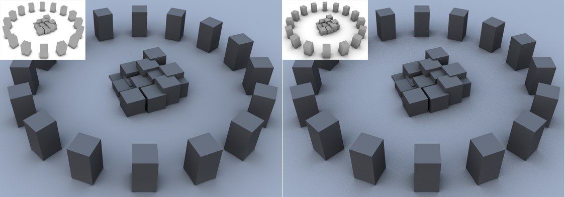 L'activation de cette option génère des informations supplémentaires concernant la géométrie proximale (tout près des bords?) Pour chaque enregistrement du cache. Lorsque les valeurs du cache sont utilisées pour l'interpolation lorsque l'image est rendue, la Map Distance sera incluse dans le calcul, c'est-à-dire que l’interpolation ne se produira pas "autour d'un coin" ou par l'intermédiaire d’un mur (mince), ce qui se traduit par des artefacts (aussi appelées «fuites de lumière").