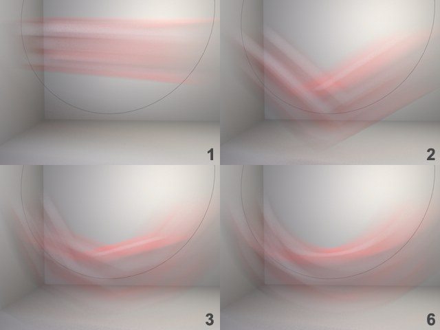 Il est particulièrement important de calculer les positions entre les images animées quand elles représentent des mouvements circulaires, rapides. Cette valeur définit le degré de subdivision entre deux images successives de l’animation (1=0, 2=1 fois, 3=3 fois, 4=7 fois, 5=15 fois, 6=31 fois). Des valeurs plus élevées utiliseront plus de mémoire (on observe une différence significative seulement quand beaucoup d’objets sont concernés). pour les images uniques/fixes, cette valeur doit être plus élevée que 4 chiffres pour assurer un maximum de qualité.
