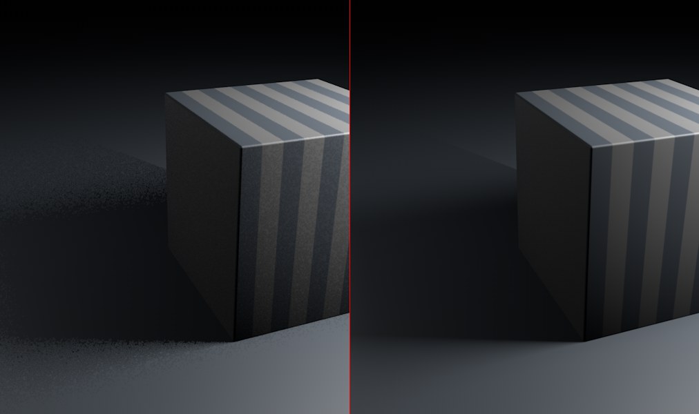 Un plus grand nombre d'échantillons (droite) donne une meilleure qualité aux ombres légères.