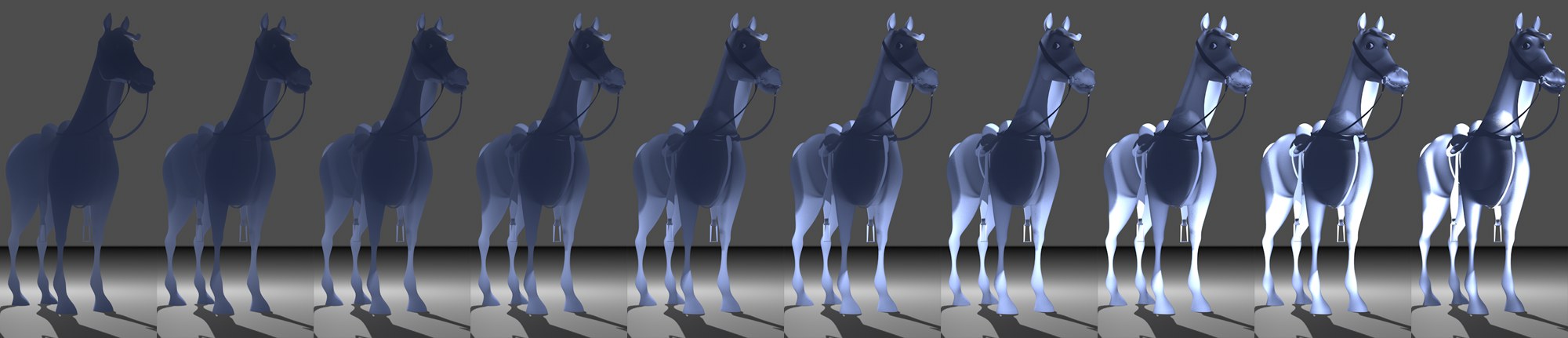 Notez à quel point les zones qui ne sont pas orientées vers la lumière sont sombres en cas de valeurs négatives : cela est dû au fait que plus de lumière est émise en direction de la source. Des valeurs positives laisseront en revanche passer plus de lumière.