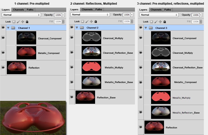 Cette section décrit plusieurs réglages permettant d'obtenir des calques individuels à partir de canaux de Réflexion complexes. Les réglages décrits ci-dessous s'appliquent à la réflexion et aux reflets spéculaires.