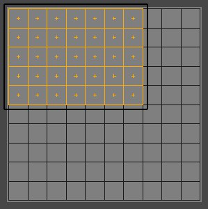 활성 툴 매니저에서 접촉만으로 선택이 체크된 경우 선택박스 내 또는 선택박스와 교차하는 모든 UV 포인트/폴리곤이 선택됩니다. 접촉만으로 선택이 사용 해제된 경우 선택박스에 의해 완전히 둘러싸여 있는 UV 포인트/폴리곤만이 선택됩니다.
