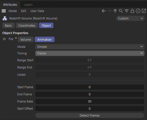 The following settings address the VDB sequence itself and control if the whole sequence is evaluated or just a part of it. Here you can also enter the Frame Rate for the sequence, if you know it.