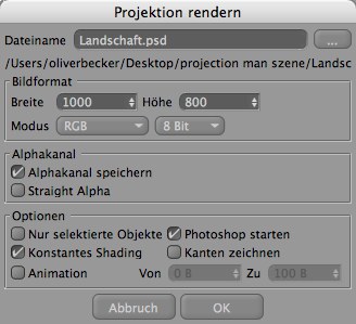 Folgender Dialog erscheint ebenfalls bei Aufruf des Befehls "Projektionstestrendering (Datei)".