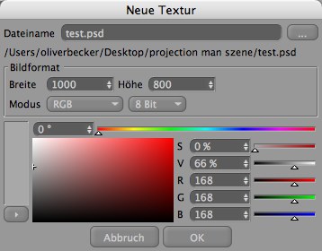 Hiermit können Sie eine neue, einfarbige Textur erstellen, die von der aktuellen Kamera aus projiziert wird. Die Einstellungen kennen Sie bereits von hier.