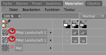Sowohl in BodyPaint 3D als auch in Photoshop lassen sich Ebenen unsichtbar schalten (und zwar unabhängig davon, was Sie mit Ebenenset bearbeiten definieren). Wenn nun diese Ebenensichtbarkeiten definieren sollen, was CINEMA 4D anzeigen soll, so wählen Sie Ebenensetauswahl von Ebenensichtbarkeit. Wenn Sie in BodyPaint 3D Ebenen über Ebenenset bearbeiten sichtbar/unsichtbar geschaltet haben und wollen, dass dieser Status auch in der Datei abgespeichert wird, so wählen Sie Ebenensetauswahl zu Ebenensichtbarkeit. Vergessen Sie nicht, die Textur dann auch abzuspeichern.