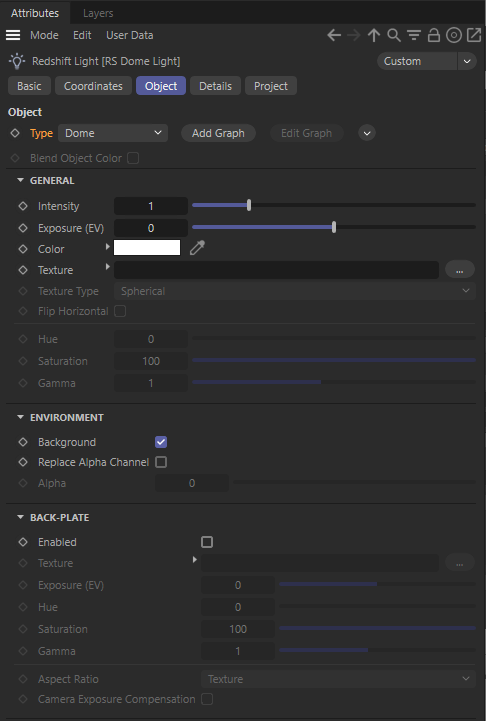 When enabled you can render a custom back-plate texture as your scene background instead of the dome Texture map.