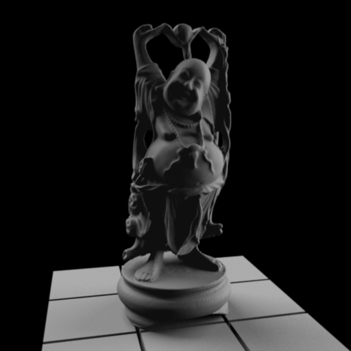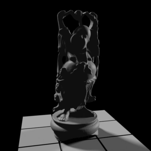 The dome light map contains only two small boxes. This is not an HDR map and, because the boxes are small, they can produce very dark lighting results by default. To fix this issue, the dome light's 'tint' parameter was set to (60, 60, 60). Because of the small bright boxes, the shadows on the final render are fairly sharp.