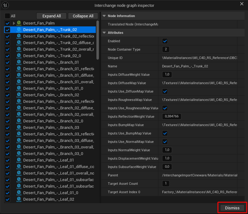 Finally, after clicking on the OK button, a last dialog opens where you can make the final selection as to which elements of the file should be loaded. Only the elements activated in the left-hand column are imported. This makes it possible, for example, to initially load a file that still contains legacy light sources, cameras or materials only via the Datasmith import and then, in a second step, to load only the animated figures of this project with the Interchange workflow. Or you can select only certain meshes or materials from an extensive Cinema 4D scene that you want to use in the Unreal Editor. For complex Cinema 4D projects, however, it can also be useful to save the desired elements separately in Cinema 4D to make it easier to select the assets actually required when importing them into the Unreal Editor. This section explains how to import Cinema 4D scenes via Datasmith.