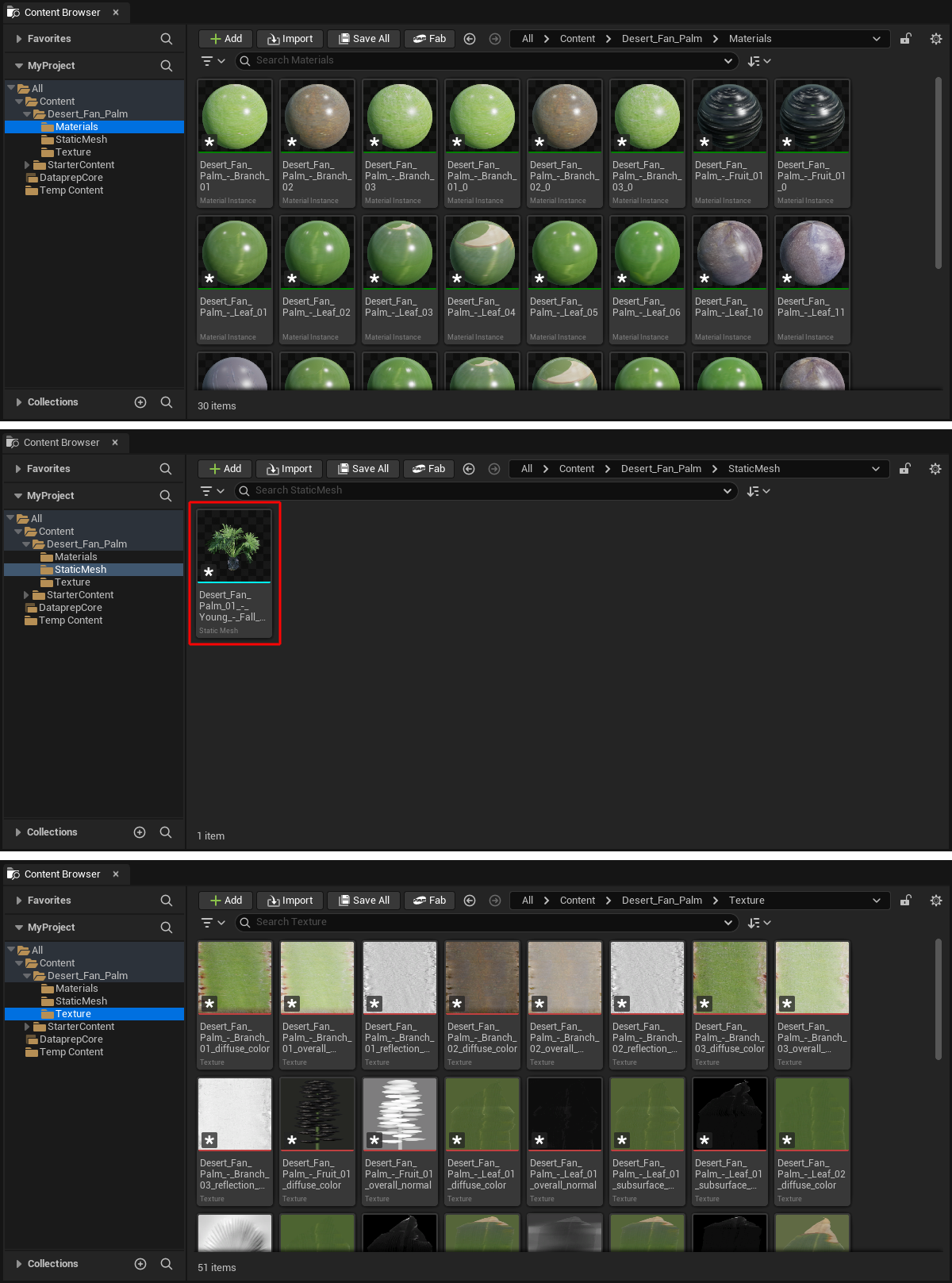 All imported components can be viewed separately in the Content Browser. From there, the assets can also be dragged directly into the Viewport, for example, or edited after double-clicking on them.