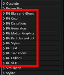 Categories. You can still access all of Red Giant's tools via the Effects & Presets hierarchy, like so: