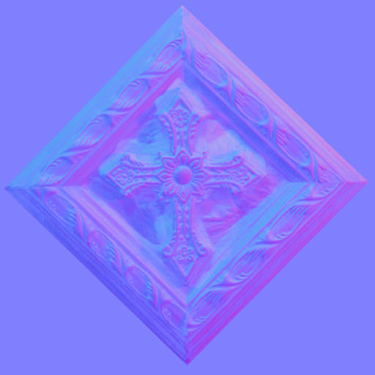 Here is an example of how a normal map can enhance the lighting detail of simple, flat geometry.