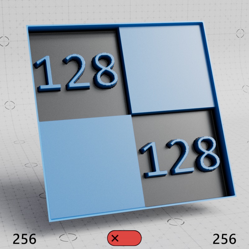 Take this example with a 256x256 checkerboard texture, each square in the texture is 128x128 pixels. First let's look at a baseline where Smart Bake makes no difference, a 1x1 tile of the texture. In the example images below, the number in the bottom left shows the actual "Bake Resolution" while the number in the bottom right shows the effective bake resolution after taking into account how many times the baked texture is tiled when Smart Bake is enabled. In this first example, both examples look the same because the texture isn't being tiled at all so Smart Bake makes no difference.