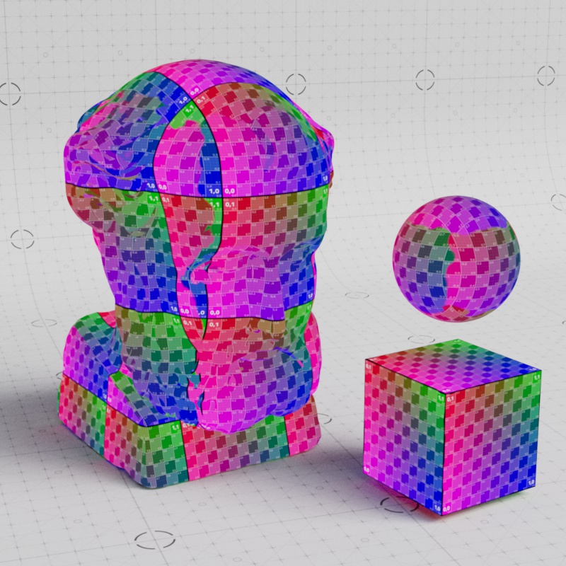 A unique style of projection that pins the textures at the top of the sphere (north pole) and the rest is pulled down over the sphere and pinches at the bottom (south pole). The advantage with shrinkwrap is that, compared to the spherical projection, there is only a seam on the bottom rather than the top and bottom.