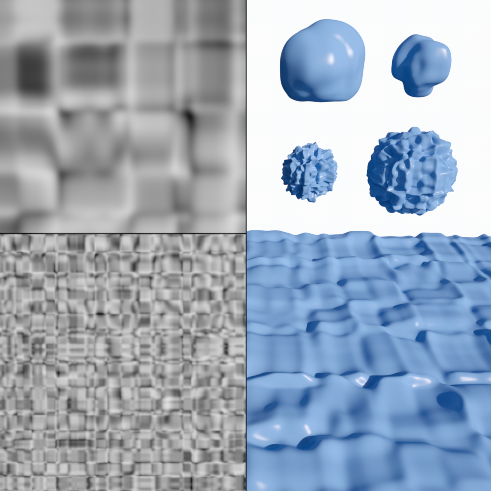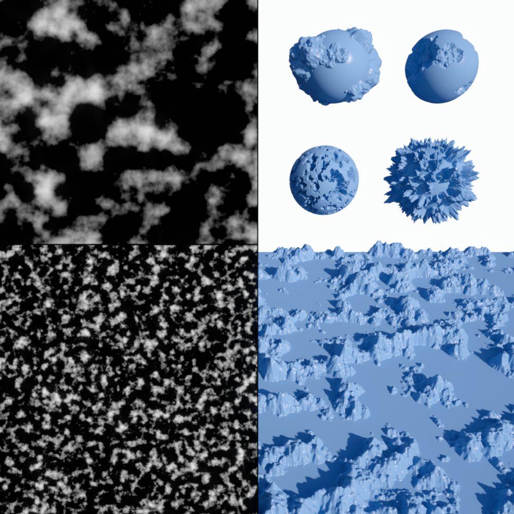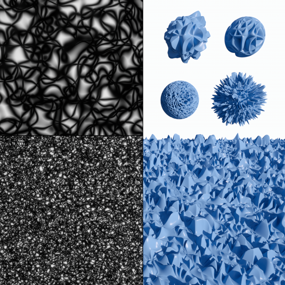 | VL Noise | Wavy Turbulence | Cell Voronoi | Displaced Voronoi | Sparse Convolution |