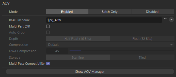 - Enabled - Render AOVs for batch and non-batch rendering.