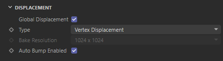 Manually configured displacement settings at the Object level take precedence over Global Displacement.