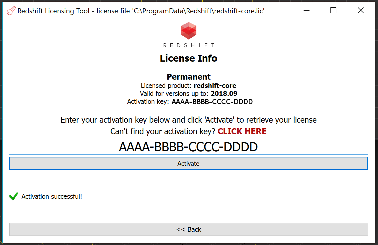If the activation was successful, you will see a message stating 'Activation successful!' as well as details about your license.