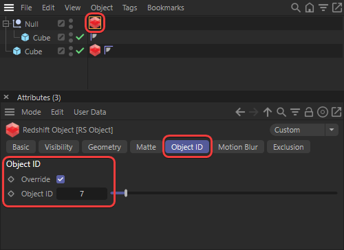 Object ID is an integer data type and is the most common of Redshift's built-in attributes. It can be used like any other integer user data in a shading graph but it is also a common preset in AOVs like the puzzle matte and the jitter node, making it an easy method of object management.